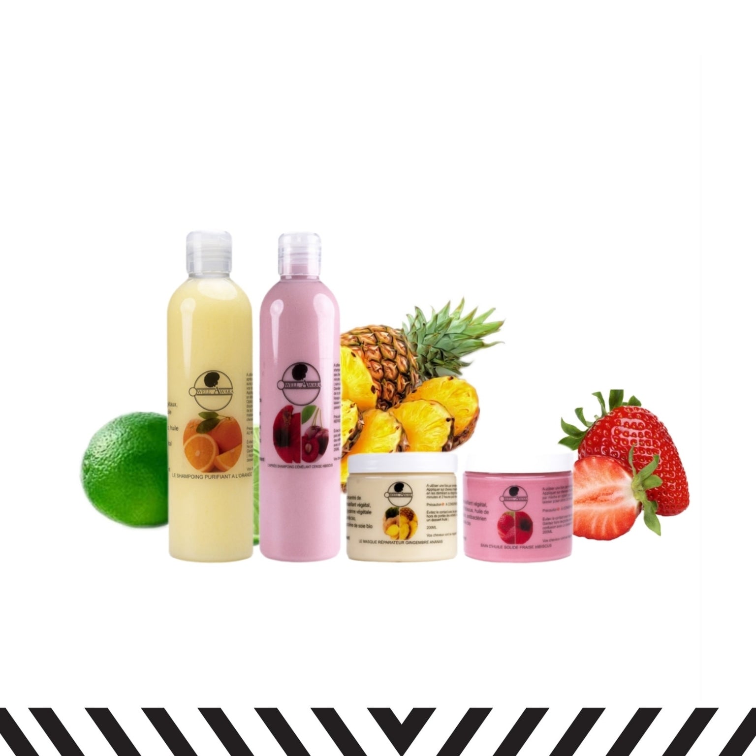 Le masque réparateur gingembre ananas nourrit et répare en profondeur vos cheveux. Leur donnant une brillance éclatante et une douceur incroyable. L'après shampoing démêlant cerise hibiscus aide à maintenir cet éclat en hydratant et en protégeant vos cheveux de la chaleur et de l'environnement.